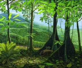 ANCIENT COLORADO. An artist’s concept of a rain forest that grew 64 million years ago.
