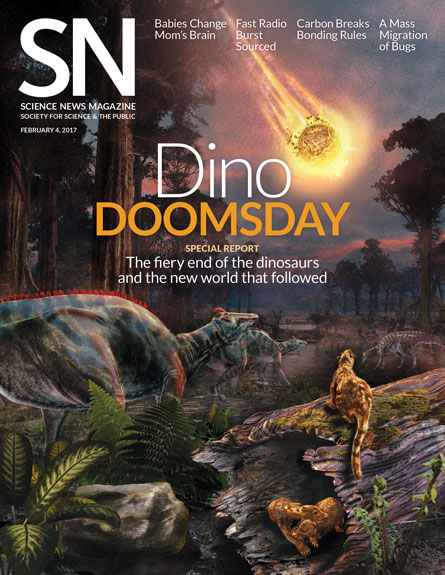 Dinosaurs and other creatures were largely wiped out 66 million years ago from an asteroid impact, volcanic eruptions or maybe a mix of the two, Thomas Sumner reported in “Devastation detectives” (SN: 2/4/17, p.
