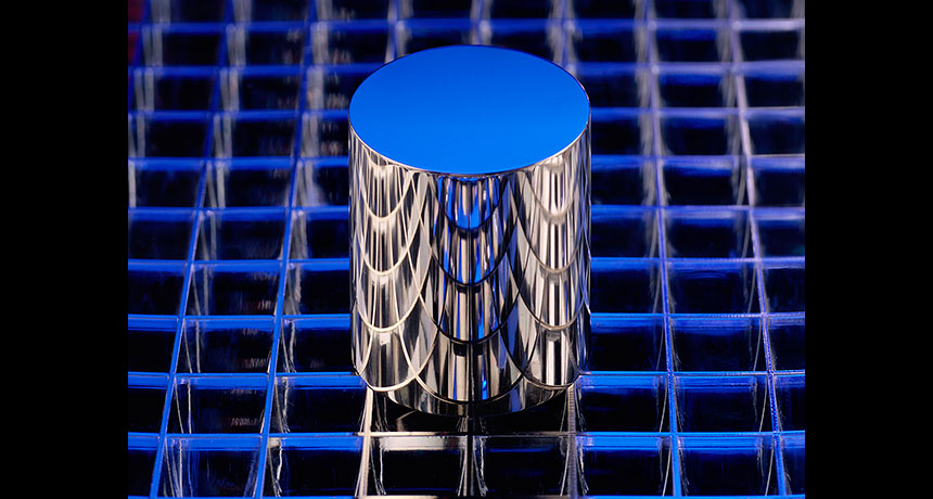 MEASURING UP This metal cylinder is the United States’ copy of the international kilogram kept in France. Scientists hope to replace this standard, the last physical object used to define a unit of the metric system, with a definition of mass based upon fundamental physical constants.