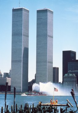 The twin towers of the World Trade Center as seen from New Jersey during Fourth of July festivities in 1978.