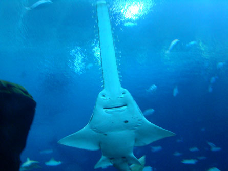News Life Sawfish don’t saw Spiked snouts slash, impale and whack prey By Susan Milius March 6, 2012 at 1:22 pm - More than 2 years ago Share this:Share Share via email (Opens in new window) Email Click to share on Facebook (Opens in new window) Facebook Click to share on Reddit (Opens in new window) Reddit Click to share on X (Opens in new window) X Click to print (Opens in new window) Print View the video Sawfish use their fearsome-looking snout to sense and slash at prey, new experiments with wild-caught fishes have found. istolethetv/Flickr Sawfishes use their spiked snouts as a combination sword, antenna and serving spoon — but not much at all as a saw, scientists have found.