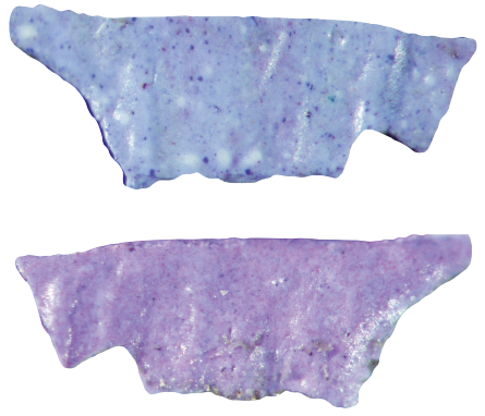 Finally, a microscopic sample taken from the painting (right) was especially revealing: The underside divulged the original purple color of the walls.