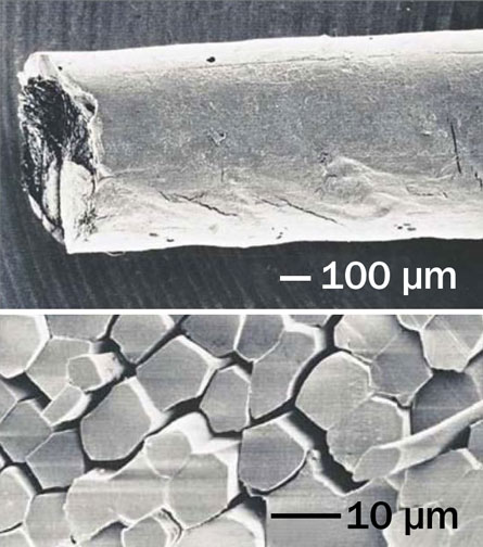 To craft violin strings, Osaki packed thousands of dragline strands into bundles. Then he twisted together the bundles and treated them with a gelatin solution. Individual fibers’ curved surfaces became flat-sided, allowing the fibers to stack together tightly.