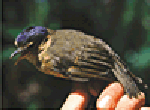 Ifrita kowaldi, a blue-capped handful with the tree-poking habits of a nuthatch, concentrates in its feathers and skin the same alkaloids that defend poison dart frogs. This explains why the bird’s plucked carcass can burn a person’s mouth as a chili pepper does, researchers report.