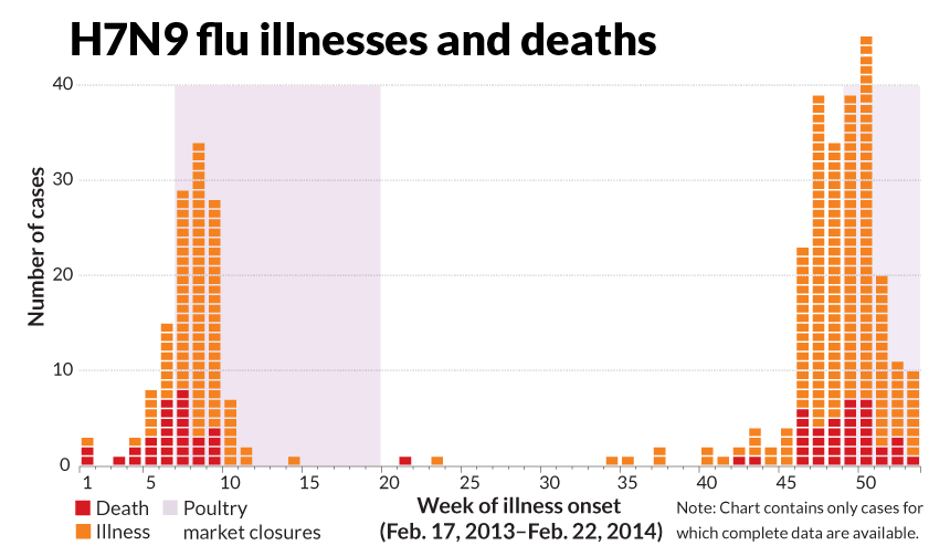 A new type of flu began making people sick in China in 2013. Researchers quickly discovered that the virus was a type of avian influenza, known as H7N9, never before seen in humans. In one year the virus has surged twice, sickening 370 people in China and killing 115 (according to data available as of February 28).
