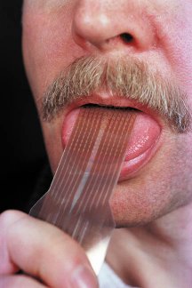 At the end of a flexible cable pressed against the tongue, an array of dotlike metal electrodes (below) stimulates touch-sensitive nerves with electric pulses.