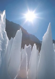 When the researchers tested the effect of particulate pollution on penitentes by using snow dirtied by a thin layer of carbon powder, they were surprised to find that the dirt accelerated spike formation. Ironically, if penitentes actually do preserve glaciers, pollution may enhance glacier survival by speeding penitentes development, Betterton notes.
