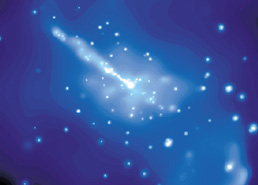 A jet (upper left) shoots out the supermassive black hole at the center of the galaxy Centaurus A. Around the galaxy, interstellar gas forms a haze that’s punctuated by X-ray point sources. These probably represent black hole or neutron star raids on neighboring stars.