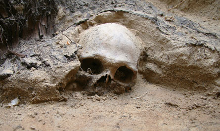 HEADING EAST Excavations several years ago at an ancient cemetery in Mongolia uncovered a man’s skeleton, including this skull, that has yielded genetic evidence of Indo-Europeans reaching eastern Asia at least 2,000 years ago.
