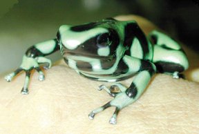 LITTLE CHEMIST. This 4-centimeter-long frog, Dendrobates auratus, can enhance the power of a particular form of toxin that it picks up from its food.