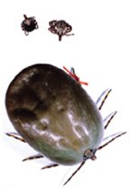 BIG MAMA. Unfed female (upper left) and male (upper right) African cattle ticks are dwarfed by a female that has received a protein, originally from semen, that stimulates feeding.