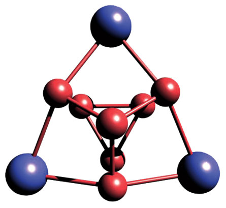 Small numbers of atoms often form structures as symmetrical, and almost as intricate, as those of snowflakes. But while no two snowflakes, even if they have the same number of water molecules, are identical, a small, specific number of atoms of the same element typically will assemble into the same, specific shape. The quintessential example is how 60 carbon atoms form buckyballs. Metal atoms such as gold, aluminum or tin also like symmetry. For example, 20 atoms of gold will assemble into a solid pyramid, but 16 will form cage-like structures, as Lai-Sheng Wang, a physical chemist at WashingtonStateUniversity and at the Pacific Northwest National Laboratory in Richland, Wash., and his collaborators have discovered in recent years (SN: 5/20/06, p. 308).