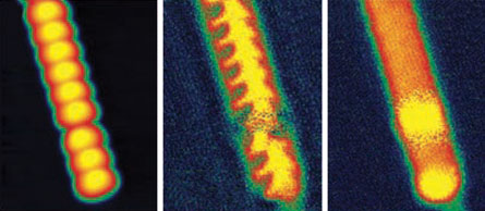 Kornberg has another application in mind. His specialty is figuring out the exact structure of proteins and other complex biomolecules. “We have devoted decades to solving one structure,” Kornberg says, referring to his work on the crucial enzyme RNA polymerase, for which he earned the 2006 Nobel Prize in chemistry. Superatoms could speed up the process dramatically. The idea is to attach superatoms at specific sites on biomolecules in solution, then flash freeze the superatoms and put them under the electron microscope. Because their shapes are precisely known, the superatoms would act as signposts, forming reference frames around each biomolecule. Computer processing of the electron-microscope data could then pinpoint the exact position of each atom in the biomolecule, producing an image of its structure, Kornberg says.