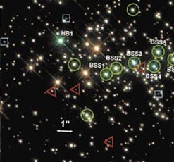 straggler stars, each labeled with the prefix BSS. Peter Edmonds/NASA