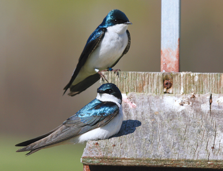 Larger broods bring more stress for a tree swallow mom (below, with mate), but also more fledglings.