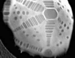 On the surface of a liquid crystal droplet, the smaller facets outside the central hexagon have shallow orientations only recently observed. Pawel Pieranski/Université-Sud