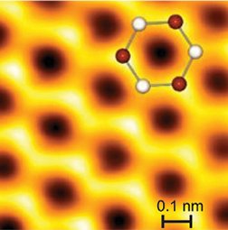 HIDE-AND-SEEK. New technique shows all six atoms of graphite’s basic structural unit. S. Hembacher, et al.