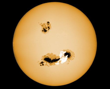 STARFLASH This illustration shows what a superflare might look like if seen from a planet orbiting a nearby sunlike star.