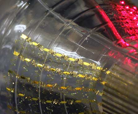 News Health & Medicine Stretchy electronics aid heart surgery New balloon catheters may help cardiologists treat common problems By Daniel Strain March 7, 2011 at 7:40 pm - More than 2 years ago Share this:Share Share via email (Opens in new window) Email Click to share on Facebook (Opens in new window) Facebook Click to share on Reddit (Opens in new window) Reddit Click to share on X (Opens in new window) X Click to print (Opens in new window) Print The latest tool for heart surgery is a lot like a balloon animal, with an electronic twist. THE WORKS This tricked-out balloon catheter carries temperature, touch and electrical pulse sensors, plus LED lights, just to give it that Tron feel.