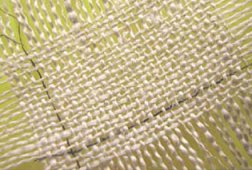 FUTURISTIC FIBERS. Materials scientists used carbon nanotubes to make two electricity-storing supercapacitors (black threads) that they inserted into cloth.