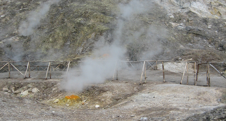 HOT DIGS Methylacidiphilum fumariolicum, the first life form found to rely on a rare earth element for survival, lives in steaming volcanic mud pits like this one outside Naples, Italy.