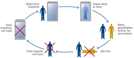 Physicists have proposed several ways of getting around the grandfather paradox (shown).
