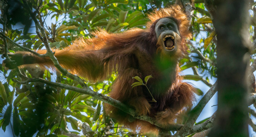 NOVEL APE Orangutans inhabiting part of the Indonesian island of Sumatra belong to a previously unrecognized species, scientists report. This population of about 800 individuals (one shown) faces grave threats to its survival.