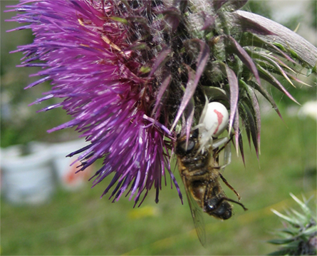 Crab spiders can scuttle, but apparently they can’t hide.