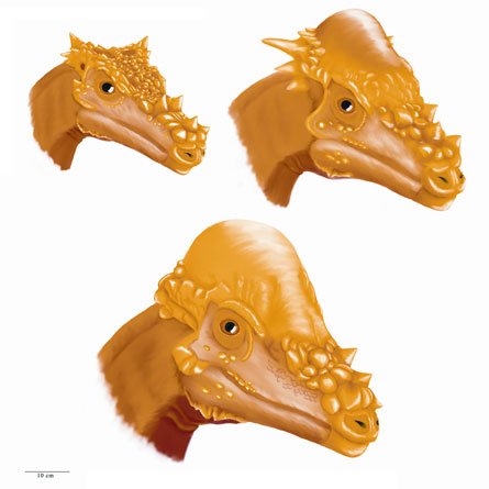 FAMILY PORTRAIT Three different dinosaurs — Dracorex, Stygimoloch and Pachycephalosaurus (clockwise from top left) — might actually be the juvenile, teen and adult of the same dino.