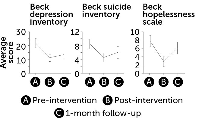 Research on the therapy remains limited to Sokol’s lab, but initial results are promising. The pilot study showed that the program decreased previously reported levels of suicidal ideation and depression. Those levels stayed low one month after completion. Now Sokol has received a five-year, $1.1 million grant from the U.S. Department of Veterans Affairs to scale up the program and eventually roll out a randomized controlled trial. In its newer iteration, the program will run for three months instead of one.