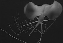 Some 3,330 meters deep in the Pacific, an as-yet-unnamed squid (above) flaps its oversize fins as it disentangles itself from the cables of a remotely operated observation vehicle.