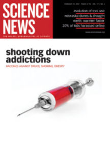 Janda’s team is planning to develop a passive version of its antighrelin vaccine, while Owens and his colleagues have such vaccines in the works against a variety of addictive drugs, such as phencyclidine (PCP), methamphetamine, and cocaine. Each of these vaccines has had some success in limiting the amounts of drugs that addicted lab animals choose to self-administer.