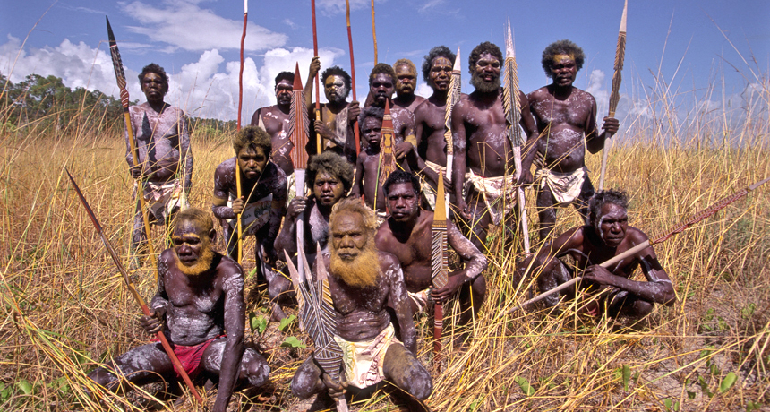 A cross-cultural analysis found that nomadic hunter-gatherer populations rarely organize to attack other groups, with the exception of members of Australia's indigenous Tiwi society (shown).