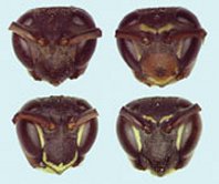 LINEUP. Yellow stripes vary naturally in faces of paper wasps from around Ithaca, N.Y. Tibbetts