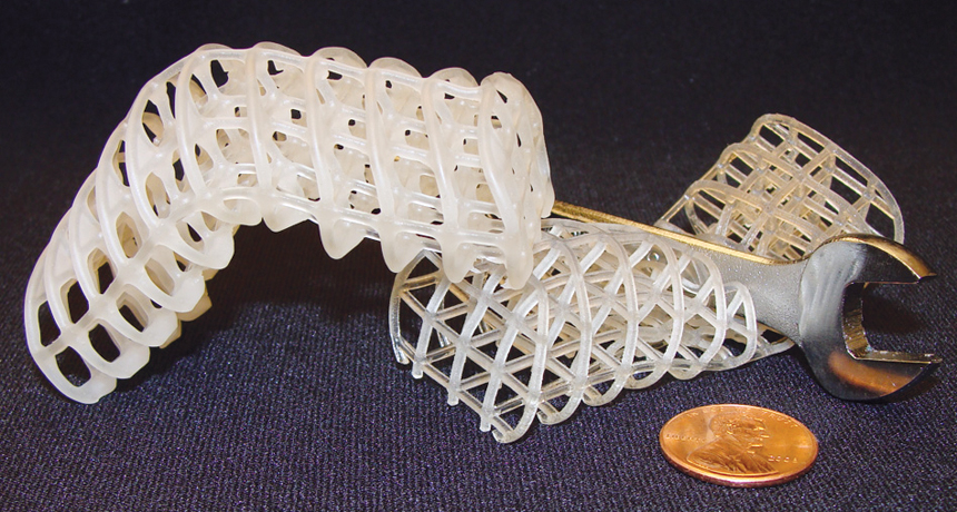 WAX ON, WAX OFF Coating a plastic scaffold in wax (left) makes the squishy structure stand firm. Without wax (right), or when the wax is heated, the scaffold is easily crushed. Robotic body parts made of the wax-plastic duo could let machines toggle between hard and soft.