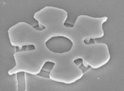 PULLING MY LEGS. When bacteria crawl clockwise in the circular groove underlying this motor, they brush past the tabs that support the motor’s star-shaped rotor.