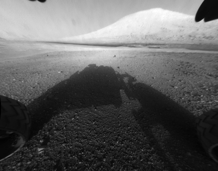 MARTIAN HORIZON From 6.5 kilometers away, Mount Sharp looms large on Curiosity’s Martian horizon. Eventually, the rover will begin climbing this mountain and reading a history of Mars’ ancient environments in its layers.
