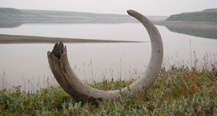 WHERE GIANTS WALKED Mammoths may have roamed steppes dominated by flowering herbs instead of grasses as previously thought, an analysis of ancient plant DNA suggests. Pictured is a mammoth tusk from the Logata River region in Russia.