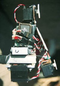 The guts of the fembot contain a computer-chip brain and small motors for head turns, wing fluffs, and body crouches.