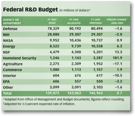 On Feb. 4, President Bush announced his proposed research and development (R&D) spending blueprint for 2009. It echoed his embattled plan from last year.