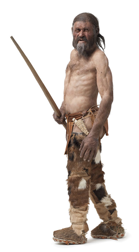 A few years after that discovery, in 2008, researchers read the mitochondrial DNA records of perhaps the most famous prehistoric European, a frozen mummy known as Ötzi, the Tyrolean Iceman. Ötzi was discovered half-buried in a melting glacier on the border between Austria and Italy in 1991. He carried a copper ax and was clad in a coat, loincloth and leggings made of domestic goatskins. His age — 5,300 years old — and implements marked him as a Copper Age farmer.