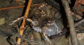 Bat echolocation tracks the billowing vocal sacs of male túngara frogs.