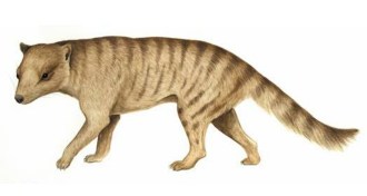 A reconstruction of the skull of a thylacine, an extinct, fox-sized Australian marsupial, reveals that the animal could have eaten prey much larger than itself.