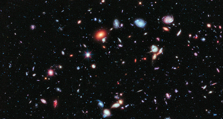 A view deep into space from the Hubble Space Telescope shows numerous galaxies, huge collections of stars like the Milky Way. A century ago, astronomers called those galaxies “island universes,” a term introduced by Civil War general Ormsby MacKnight Mitchel.