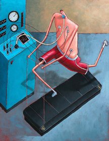 The Boston scientists recruited men who were relatively fit and had them run downhill on a treadmill for 45 minutes at a stretch. Half were in their 20s; the rest, in their late 60s or early 70s.