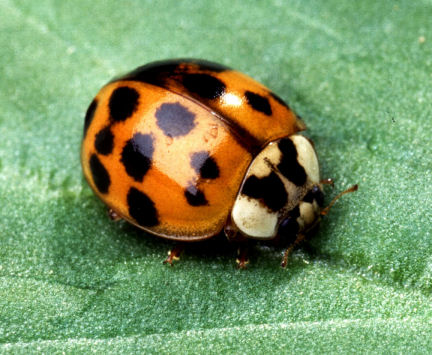 The harlequin species that the Iowa researchers studied exhibits wide individual variation in shell hue. In the United States, the species ranges from tomato red to yellow. In Asia, some H. axyridis specimens even have black shells with red spots.