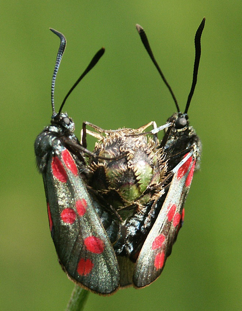 In six-spot burnet moths (Zygaena filipendulae), male moths transfer cyanide-producing compounds to females. The poison is hard to make and comes in handy; females use it for their own defense and store some in their eggs for larvae to use later. In November, researchers in Denmark reported that male moths throw a stocking stuffer into the transfer, giving females a compound, 5-hydroxytryptophan glucoside, that may cause females to copulate longer and delay egg-laying, which reduces the odds she’ll mate with another male.