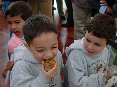 The food is actually quite tasty (yes, I tried cricket-laced Chocolate Chirp Cookies, Crispy Cajun Crickets, Cinnamon Bug Crunch, an Apple-Mango Chutney with waxworms, and crackers topped with a particularly yummy Hoppin’ Herb Dip made from cream cheese, sour cream, peppers, onions, seasonings and house crickets).