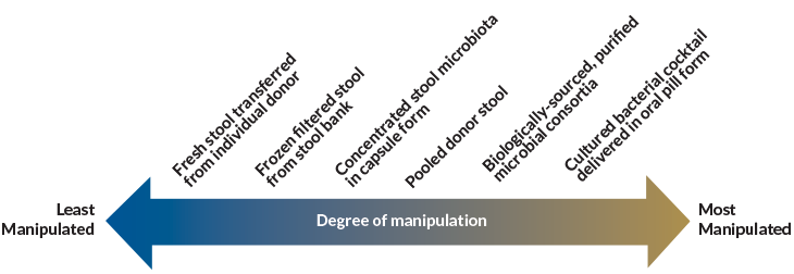 The third track would be for “stool-based products.” These would be pills or delivery systems that offer, say, combinations of microbes, rather than the current practice of basically “polishing a turd,” notes von Rosenvinge. These would be regulated as biological products or drugs.