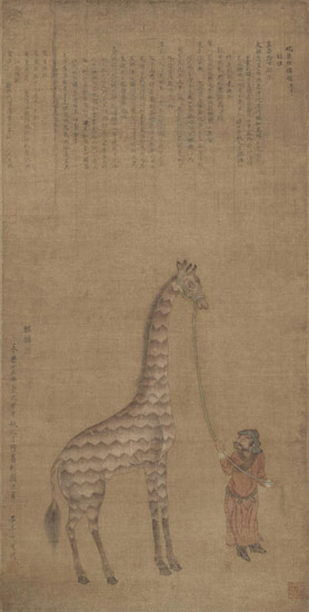 I was recently perusing the gorgeous new tome Giraffe Reflections by Dale Peterson and photographer Karl Ammann and was intrigued by an image of a 13th-century Chinese painting of a zigzag-covered giraffe being led by an attendant. And then I realized that this was a picture of a giraffe that had actually lived in China during that time. How was that possible?